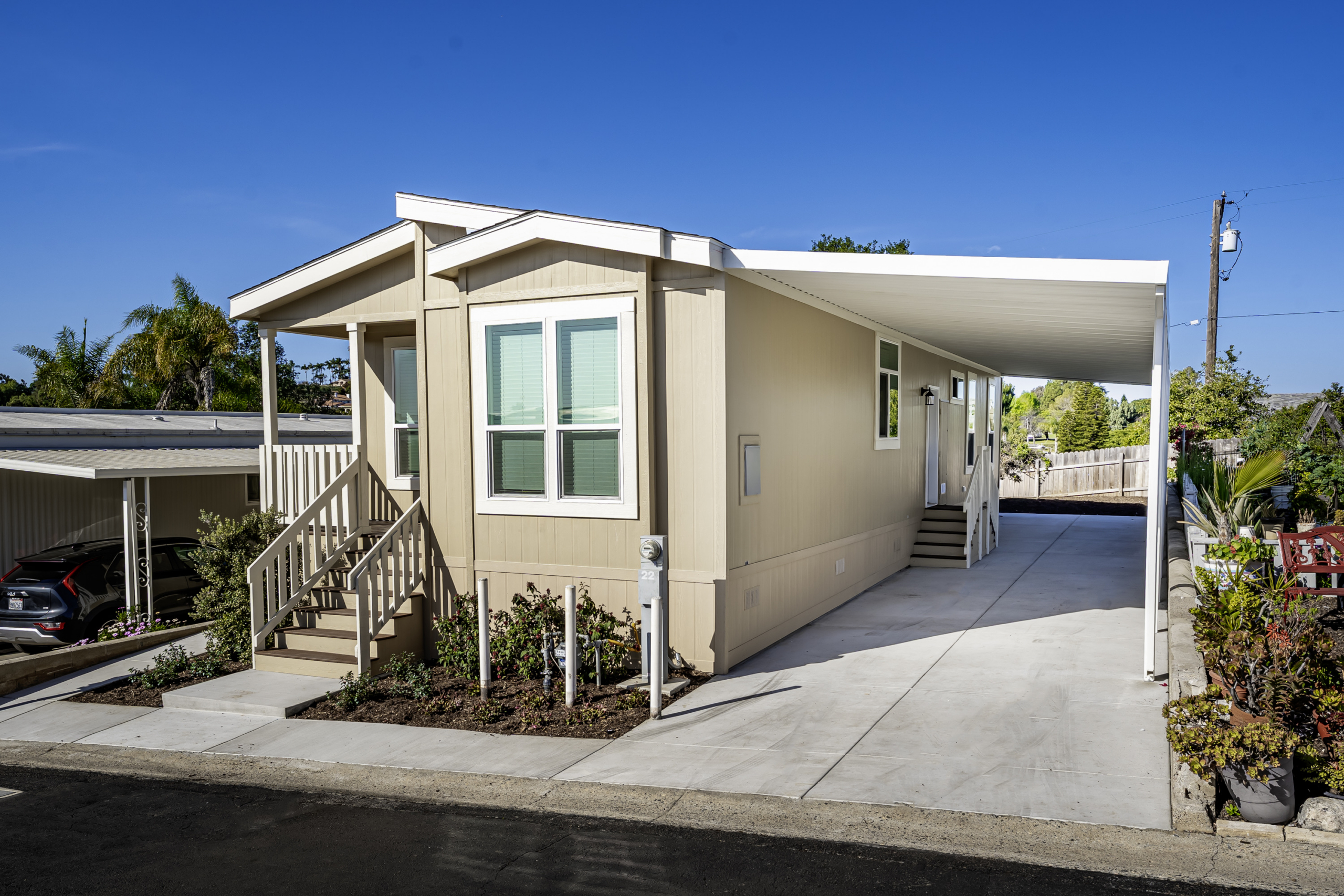 Enjoy easy, comfortable living in Crestview Hills Estates, one of Fallbrook’s most peaceful 55+ manufactured‑home communities. This BRAND-NEW home features stainless steel appliances, LVP flooring, and upgraded finishes throughout. Outside, you’ll find a full-length carport awning, new concrete driveway and walkways, and a spacious backyard perfect for gardening, entertaining, or relaxing. The front planter box is auto‑irrigated for low‑maintenance curb appeal. Crestview Hills offers resort-style amenities, including a renovated clubhouse with streaming TV and billiards, a private fitness room, a heated pool, and a Jacuzzi-all designed for an active, social lifestyle. The community hosts regular events, so it’s easy to meet neighbors and join in. Just minutes from downtown Fallbrook, the area offers shopping, dining, and local services, with the charm of rolling hills and avocado groves. Temecula, Murrieta, and San Diego are also within easy reach. THIS HOME IS MOVE IN READY!!! Incoming space rent for new residents is $1,550, with a special offer of TWO MONTHS FREE RENT!