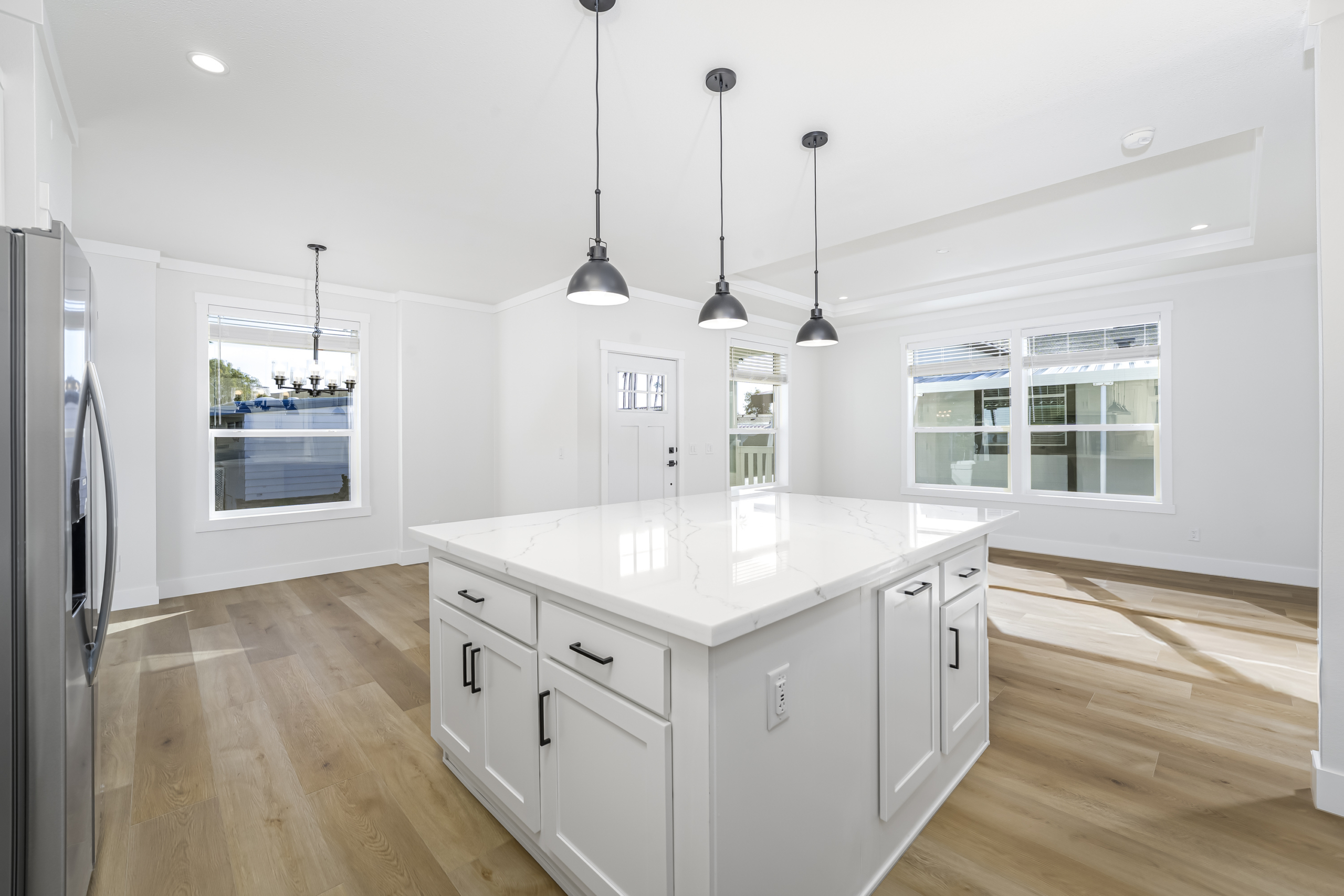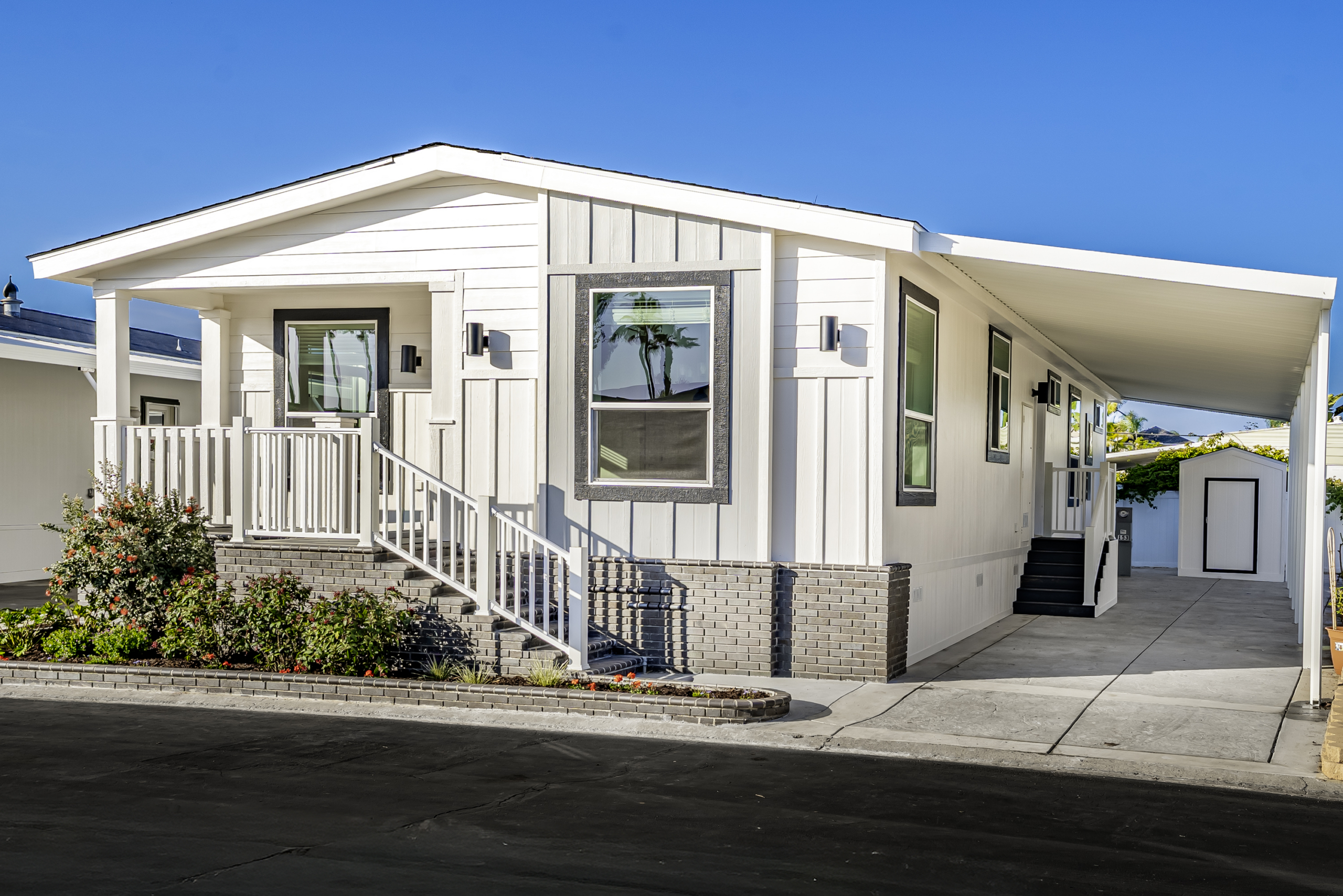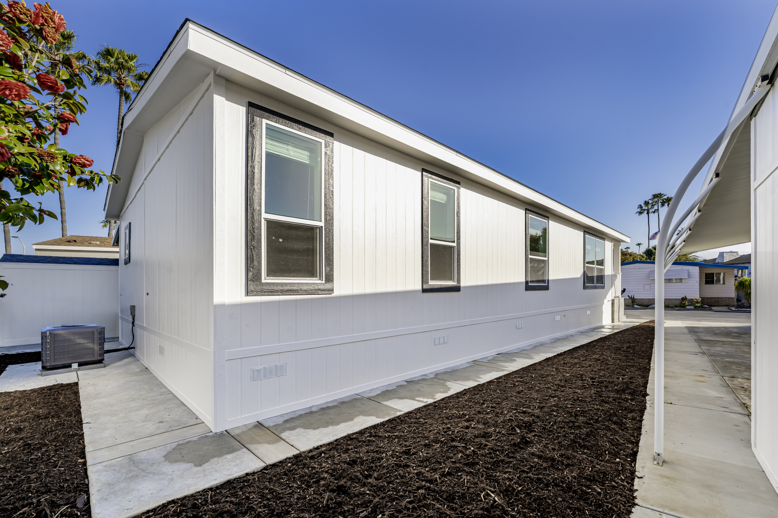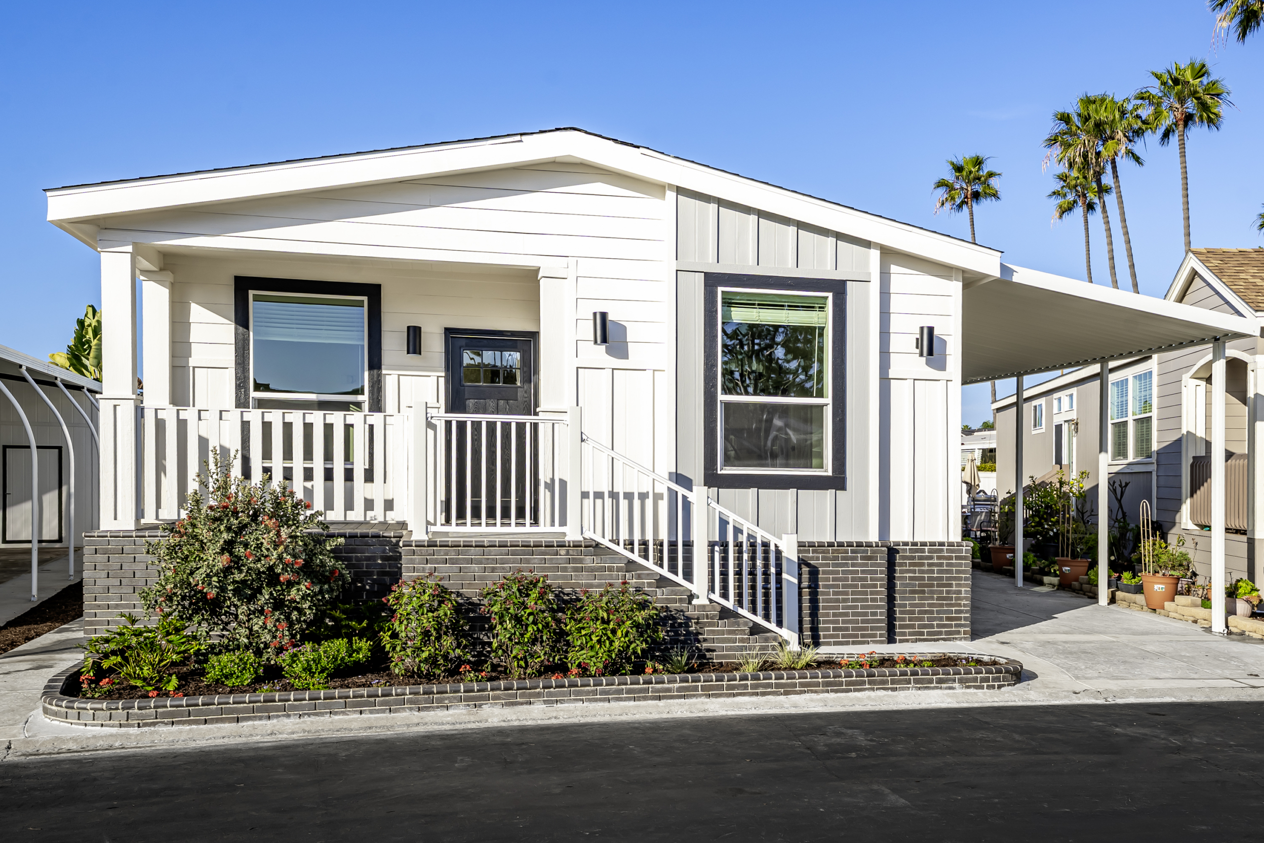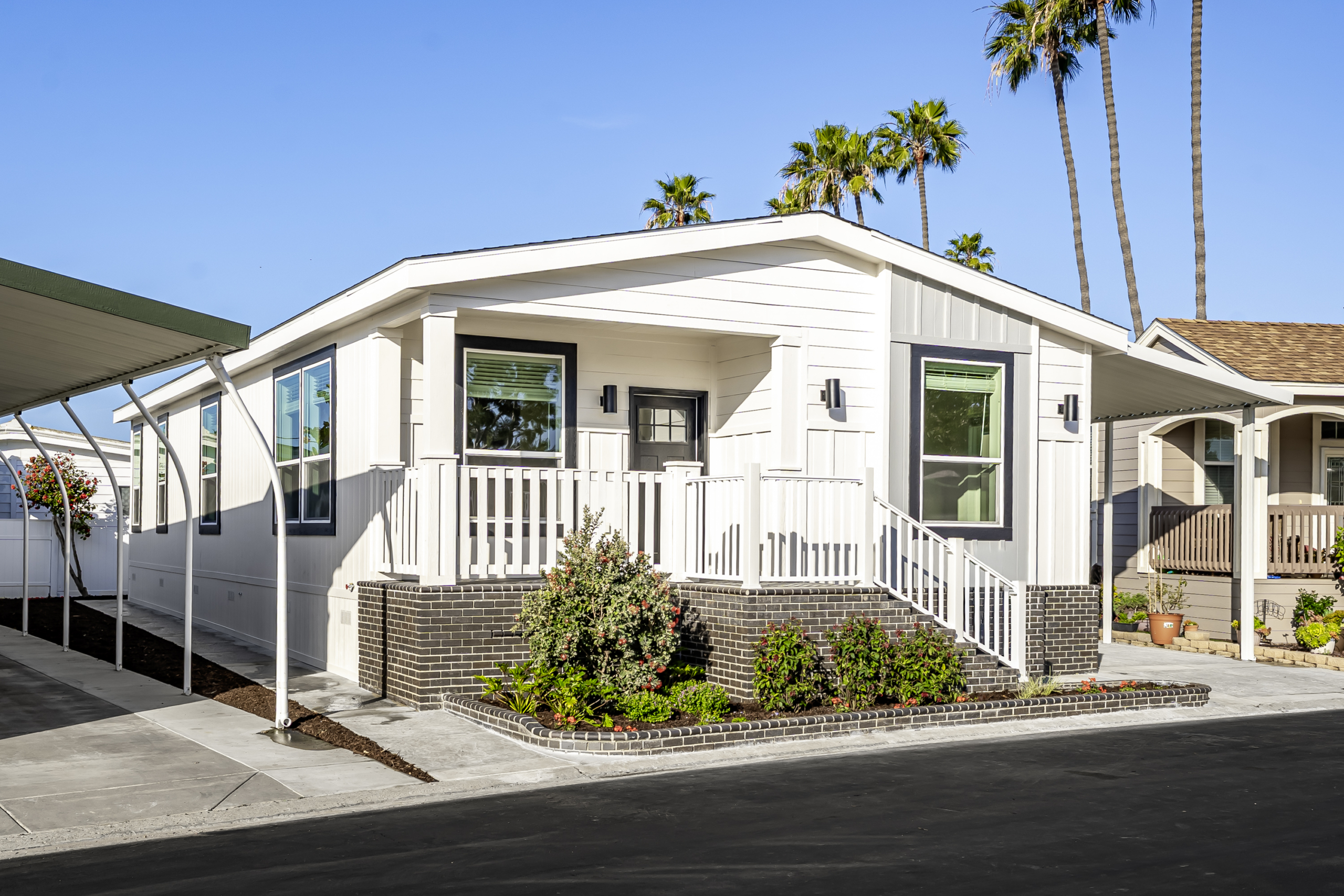 Be the first to own this brand new 3 bedroom, 2 bathroom home in the highly sought-after Lakeshore Gardens 55+ community in Carlsbad. Located in a prime spot near the clubhouse and common areas, this home is coming soon and will be ready to welcome its first owners. Enjoy a large lot with a new driveway, carport awning, and covered front porch perfect for relaxing outdoors. Inside, the open layout features luxury vinyl plank flooring throughout, a spacious living area, and abundant natural light. The modern kitchen includes stainless steel appliances, quartz countertops, shaker cabinets, and a large island with seating-ideal for cooking and entertaining. The primary suite offers comfort and privacy, while two additional bedrooms provide flexible space for guests, hobbies, or an office. Community amenities include a pool, spa, fitness center, clubhouse, and social activities-all set within a beautifully maintained coastal neighborhood. It is directly across from shopping and dining at Poinsettia Village, near South Carlsbad State Beach, and just minutes from golf courses and coastal trails. Everyday convenience meets coastal relaxation in this sought-after community. This is a rare opportunity to own a brand new home in one of Carlsbad’s most desirable manufactured home communities. Contact us today for details and availability! *Images are of a comparable model home; finishes and layout may differ slightly.* *Current monthly land lease of $2,525 is set to increase to $2,632 1/1/2026*